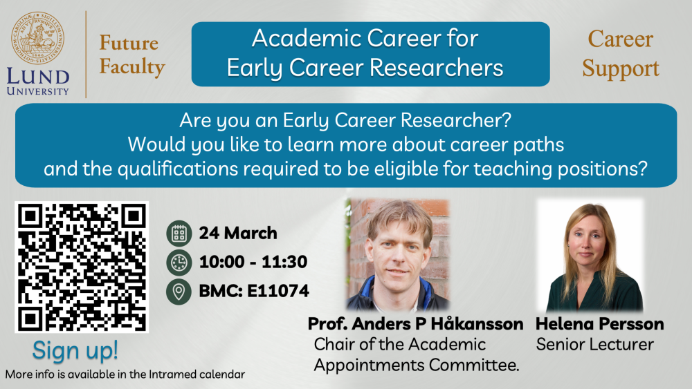 Career support session: pathways, teaching eligibility, and what’s expected Are you an early career researcher and wondering what an academic career path at Lund …